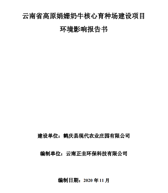 云南省高原娟珊奶牛核心育種場建設(shè)項(xiàng)目環(huán)境影響報(bào)告書